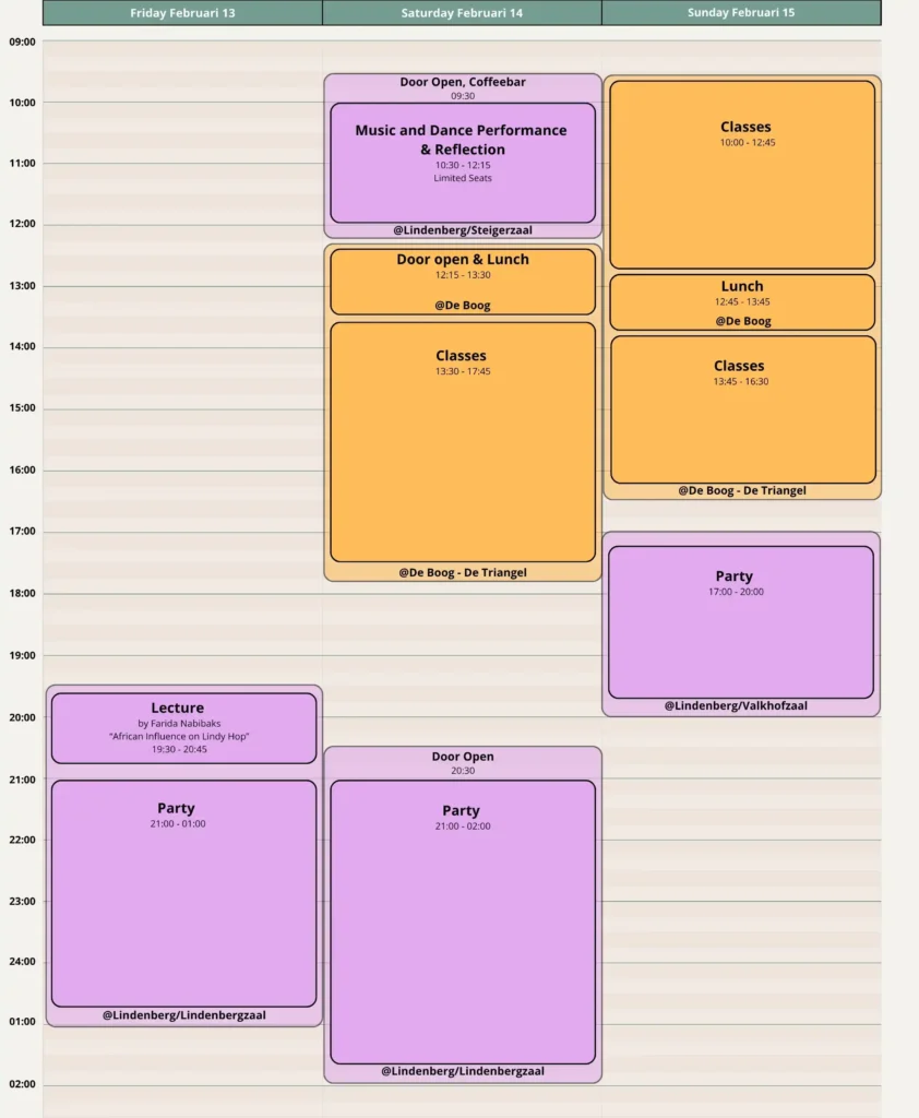 If you sign up for a Full Pass for What’s Hop!? you get to join 6+ hours of workshops in lindy hop and solo jazz on the Saturday and Sunday. You can sign up for three different levels, depending on your experience.